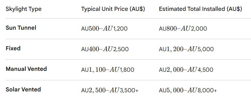 - Market Value: Real estate experts suggest a well-placed skylight can add between AU$10,000 and AU$15,000 to the perceived value of a home by enhancing the "indoor-outdoor" flow.